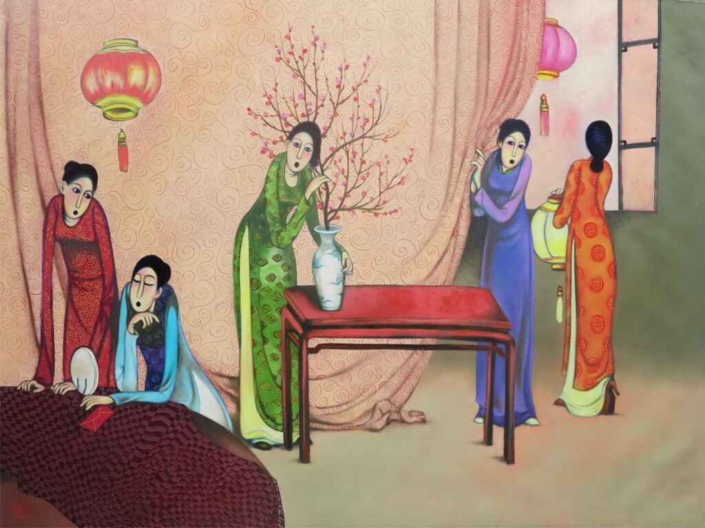 As many others artists, he follow the concept of impress the beauty of Vietnamese women, ladies, and childhood of countryside life. But Tran Quang Huan has successful in his unique style which non of others artists could easy to make for them the special in among of the beautiful and talent of artists.