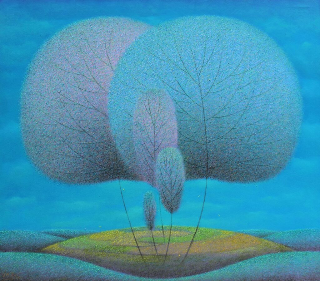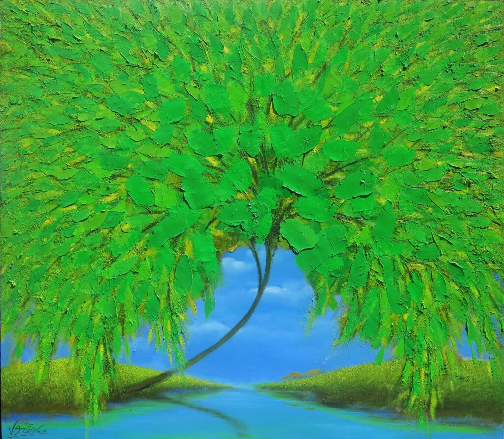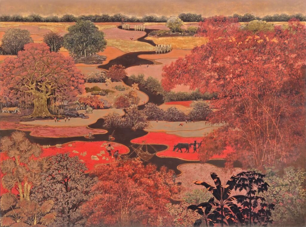 Dien grew up in the Quang Ninh province – a mountainous region with abundant land, forest and water. This experience contributed to and shaped Dien’s visualisation and aesthetic sense in his paintings. His hallmark representations of quiet and peaceful landscapes that are often accompanied by the visual play on colours of the four seasons in transition are now internationally recognised as quintessentially Dien’s.